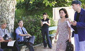 (9)藤野先生 インタビュー受ける 8月23日ベルンから列車でジュネーブに移動し、専用バスに乗り込んでいるところへ、「スイス共産党」の人たちが訪ねてきた。スイスでは、労働党と名のっていたはずだが?と思っていると、一緒に乗り込んだジェローム氏がそのいきさつを話してくれた。 |