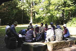 (8) ベルンの森で車座になり ベルン郊外にブレムガルテンという大きな森がある。この森の中で、1914年9月6日ロシア社会民主主義者の集会が開かれ、レーニンの報告『ヨーロッパ戦争における革命的社会民主主義派の任務』を採択した。 |