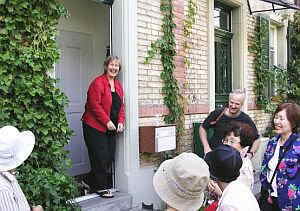 (6)「人民の家」でレーニンが講演 8月20日、チューリッヒ市内の「人民の家」に行った。 4階建ての建物の2階に、レーニンが青年集会で講演した部屋があり、正面にレーニンのレリーフが飾ってあった。1917年1月22日に行われたその講演は、次の言葉でしめくくられたという。 「われわれ老人たちは(レーニンは47歳だった)、おそらく、生きてこのきたるべき革命の決戦を見ることはないであろう。しかし、私は、堅い確信をもって、つぎのような希望を述べてよいと信じる。それは、スイスや全世界の社会主義運動でこのようにりっぱに活動している青年諸君は、きたるべきプロレタリア革命で闘争するだけでなく、さらに勝利もする幸福をもたれるであろう、ということである。」(『人間レーニン』p359) |